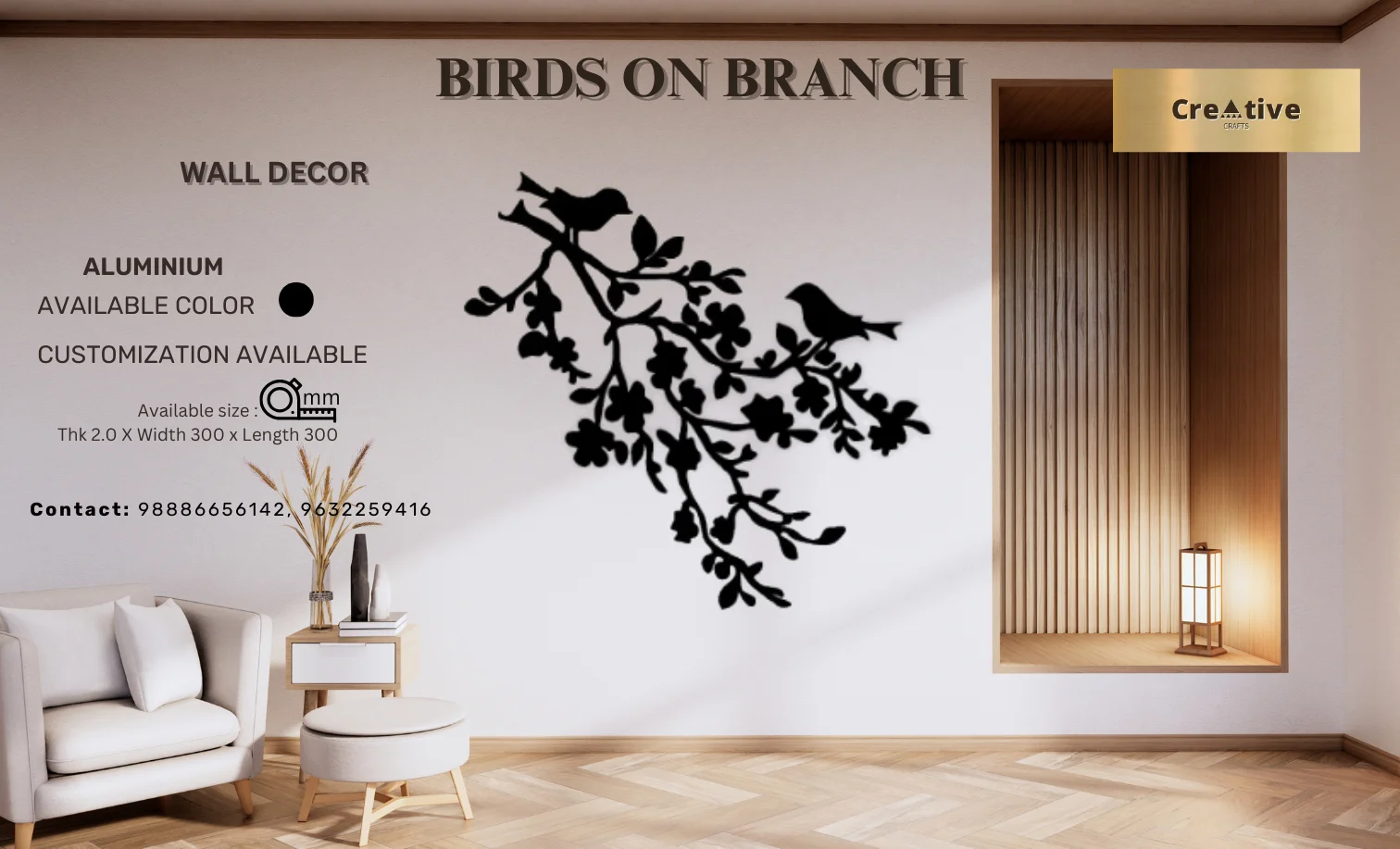 Enhance your living space with this elegant Birds on Tree Wall Decor, crafted to bring a touch of nature and sophistication into your home. Made from high-quality aluminium, this piece is durable, lightweight, and designed for long-lasting appeal. The sleek black finish adds a modern aesthetic, making it a perfect fit for living rooms, bedrooms, offices, or any contemporary interior.